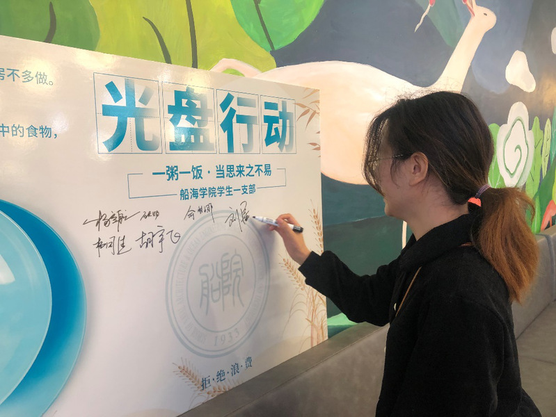 在疫情防控常态化条件下,支部党员们从自身做起,在食堂按需打饭、分散就餐,坚持做到吃光盘中餐、餐餐不剩饭,并晒出自己的光盘。以此来倡议大家从每一餐做起,加入“光盘族”行列,吃多少打多少,对浪费行为说“不”。在支部党员的号召下,大家纷纷在光盘行动签名板上留下了自己的名字。
