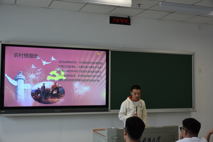 研究生三支部的学生党员们来自湖南、河北、贵州、江苏、湖北、河南省、安徽、福建8个省份,大家争相将家乡最动人的红色事迹展现在支部党员们面前,生动讲述了毛泽东同志故居、西柏坡中共中央旧址、遵义会议会址、盐城新四军纪念馆等20个地区的红色事迹。从老一辈革命家“宜将剩勇追穷寇,不可沽名学霸王”的革命精神,到共产党人“为有牺牲多壮志,敢教日月换新天”的奋斗精神,学生党员们在调研家乡党史故事的过程中,不断加深了对“四史”的认识和理解,在相互交流学习的过程中,不断坚定了“牢记党恩听党话,一心一意跟党走”。支部党员余佳豪在活动交流中说道:“学党史就是要深刻挖掘党史故事背后蕴含的正向力量,本次党日活动让支部党员们深受鼓舞,对过去充满感情,对现在充满热情,对未来充满激情,在党史学习教育中汲取了经验智慧,激发了新时代青年学生党员的责任和担当。”