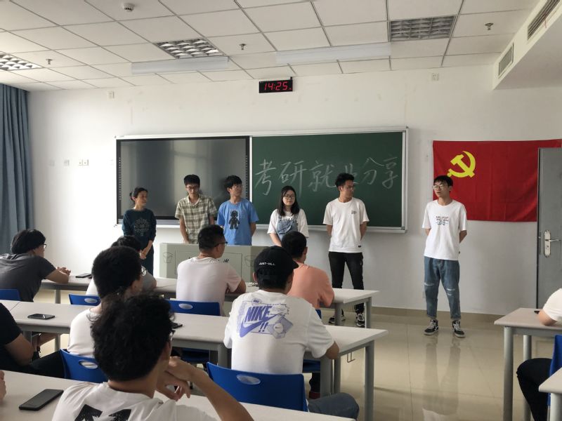 现场提问环节中,同学们积极踊跃提出考研的疑问,师兄师姐结合自身经历进行了针对性的解答。整个交流会现场激情洋溢,同学们受益匪浅。此次活动也是学生二支部书记项目“不忘初心,我是党员进行时”系列活动之一。