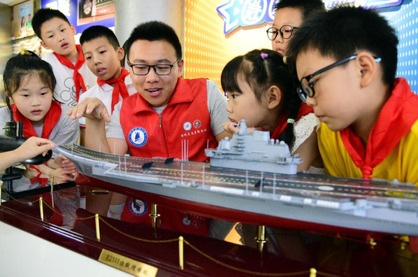 本次活动主要分为三个部分,第一部分是由新番 实践团成员向小朋友们讲解船舶相关知识,包括军船、航母、潜艇、民船的不同特点及作用,同时又结合自然界仿生学的相关知识讲解了船体结构。第二部分是讲解郑和下西洋的故事,借由生动形象的地图为小朋友们勾勒出当时远航的线路。第三部分则是实践团的所有成员带着小朋友开展航模的搭建活动,其中包括一艘辽宁舰一艘山东舰。很多小朋友的动手能力都特别强,同组小朋友一起配合,在遇到困难时,不骄不躁,参考着搭建说明书,一步一步将航模搭建完成。在航模完成的那一刻,他们脸上表现出的成就感、喜悦感真真正正地感染了同学们。