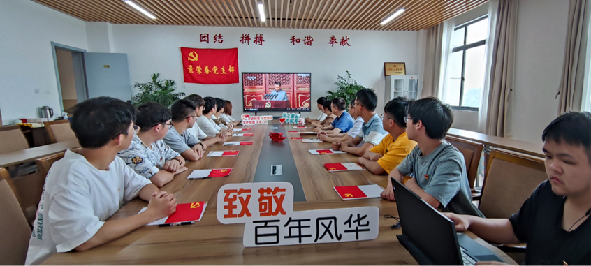 7月1日上午8时,庆祝中国共产党成立100周年大会在北京天安门广场举行,船海学院景荣春学生党支部组织全体党员在会议室记录了这一盛世庆典。