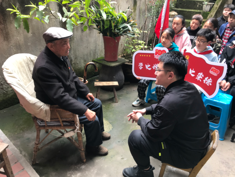 图2 90后青年党员聆听“90后”老党员讲述红色故事