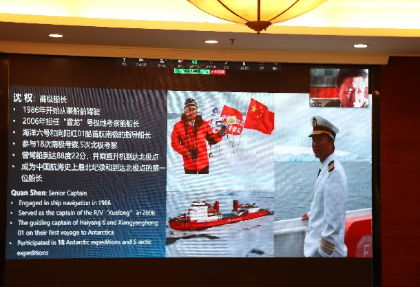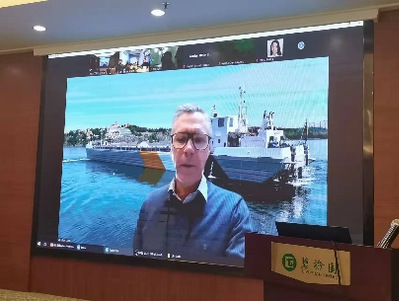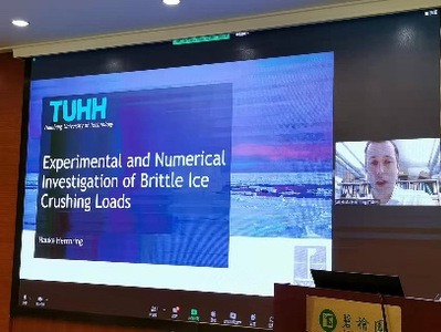 11月11日下午15时,研讨会开幕式正式开始,江苏科技大学周利教授和瑞典皇家理工学院Magnus Burman教授分别发表欢迎致辞,并邀请大会专家做主题报告。中国远洋海运集团有限公司的蔡梅江教授展望了双碳目标下的2035北极航运新模式,阐述了我国参与北极事务的新思维;沈权船长即将随雪龙2号前往南极开展为期1年半的南极科考,临行之前,为大会做了中国南北极科考事业的精彩解读。大连理工大学的宗智教授作了题为“Engineering Environmental Ice Conditions and Ship Resistance in Brash Ice”的报告,重点介绍了碎冰模型实验开展情况和数值模拟方法。德国汉堡科技大学的Hauke Herrnring教授、瑞典皇家理工学院的MengZhang博士、Harsha博士分别做了主题报告。