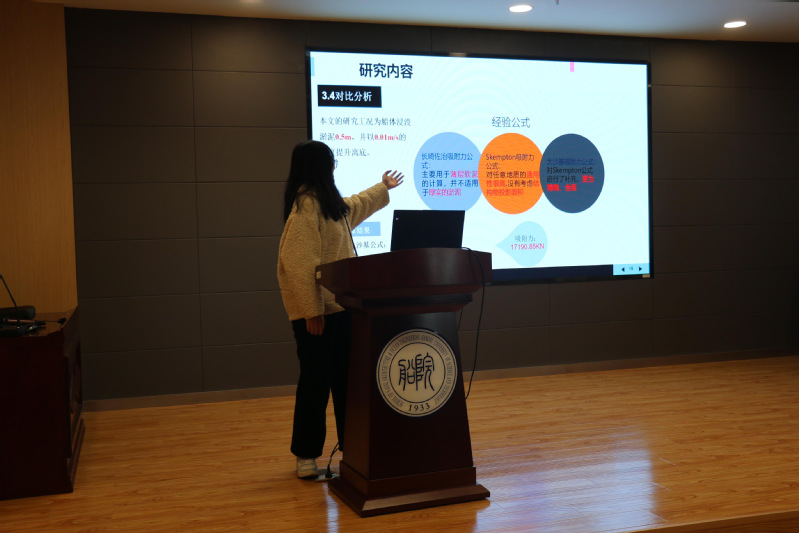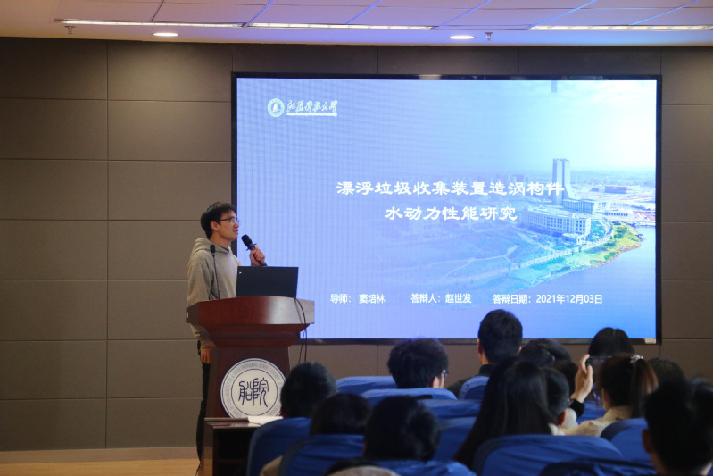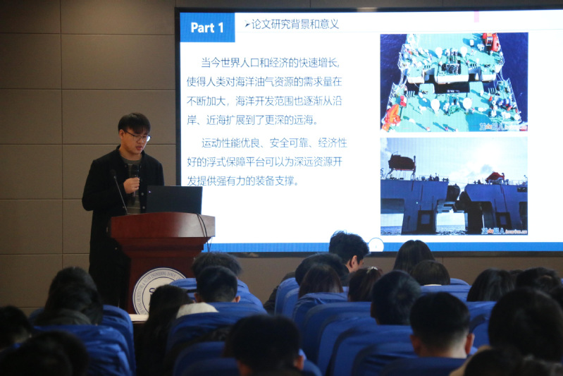 论坛中,7位同学分别就论文中的研究内容和创新之处展开讲述,与大家分享自己在所研究领域中的科研方法与学习经验。刘赫崴、凌浩、张士玉、赵世发、杨芷蘅、赵小超与田盛凯分别做了《考虑单元网格尺寸影响的RTCL准则修正及应用研究》、《基于证据理论和贝叶斯网络的智能船舶自主靠离泊系统可靠性分析》、《基于非线性接触分析的浮式结构复杂构型连接器强度研究》、《漂浮垃圾收集装置造涡构件水动力性能研究》、《沉船起吊过程中的吸附力影响因素研究》、《基于波浪砰击载荷的大型邮轮局部区域响应及线性优化研究》与《传感器位置浮动下基于多目标优化的节点选择算法》等主题报告,就研究成果和实践经验进行了交流与分享,研究内容紧扣目前船海的研究前沿和核心技术。