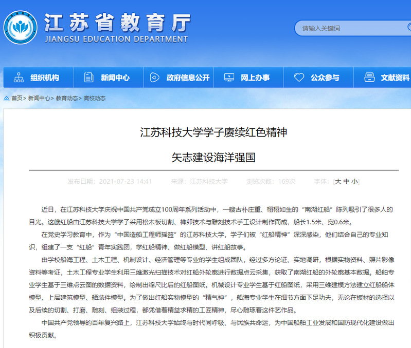【建设成效】学院“红船”青年实践团专题活动被江苏省教育厅专题报道