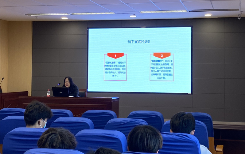 赵晨光老师针对大学生中普遍存在的“躺平”、“摆烂”心态,分析了该类心态产生的原因,并就如何摆脱提出了对策建议。在讲座中,同学们认识到努力奋斗是这个时代永恒的主题,成功只会降临在每一个勇于追逐梦想的年轻人身上,积极进取的人生态度才是我们面对学习、工作、生活的正确选择。