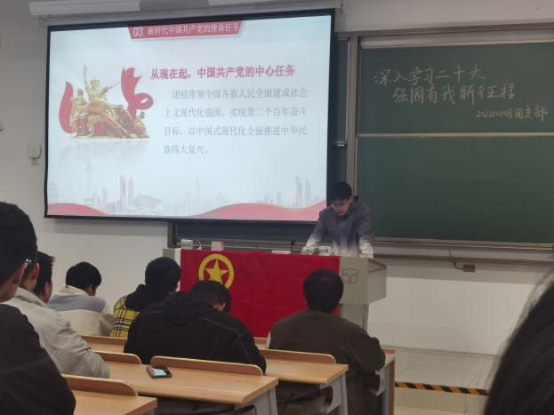 活动中,顾梓桢老师表示“‘时代呼唤着我们,人民期待着我们,唯有矢志不渝、笃行不怠,方能不负时代、不负人民’。习近平总书记的这句话深深感染着我,只有将所学贯彻到生活中、将所想付诸实践中,我们才能做到立足国内、放眼全球,用多元化的思维讲好中国故事。”谢培森同学分享了自己的学习感悟。他说道:“党的二十大报告中指出,目前党的中心任务是:团结带领全国各族人民全面建成社会主义现代化强国、实现第二个百年奋斗目标,以中国式现代化全面推进中华民族伟大复兴。虽然内涵非常深奥难懂,但离我们却并不遥远,作为大学生,我们学习的目的就是为了建设祖国,报效国家,这正是我们的理想。”