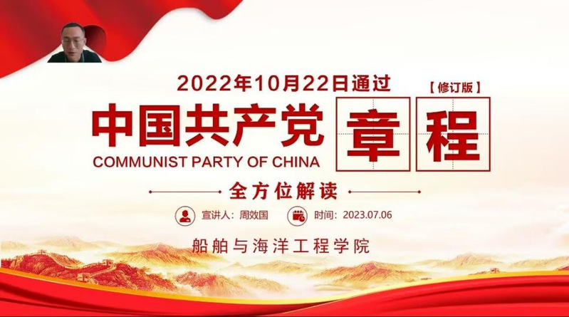 为深入学习贯彻习近平新时代中国特色社会主义思想,进一步加深对《中国共产党章程》的理解,7月6日下午,新番 副院长周效国老师以“《中国共产党章程》的全方位解读”为题,在腾讯会议以线上的方式为本科生二支部的全体师生开展主题教育专题党课。