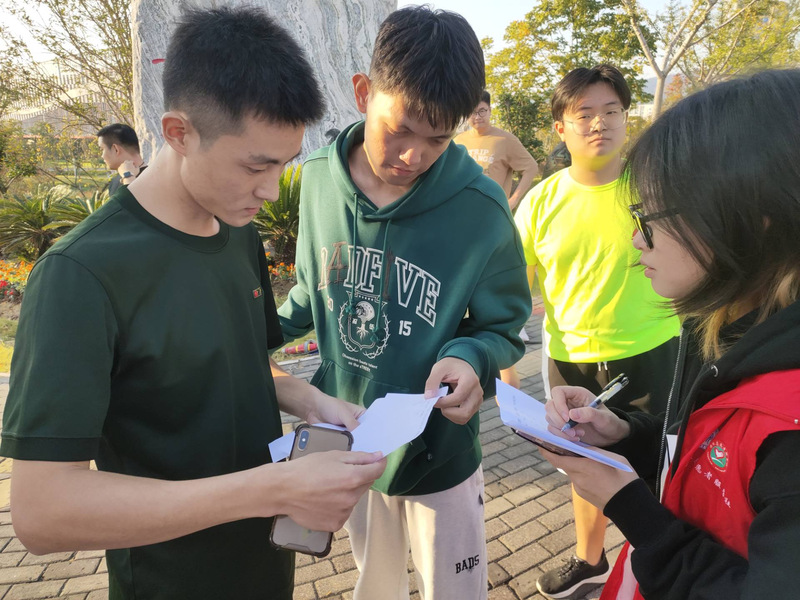 10月21日下午四点,活动正式开始,选手们怀着激动的心情跃跃欲试,一声令下,每组的第一棒选手疾速出发。到达接力点后,比赛带来的兴奋感并不影响大家在答题时的冷静判断,大家迅速、准确的喊出问题的答案;随着比赛的进行,小组间的差距慢慢拉大,但并没有减弱选手们你争我赶的势头。全场比赛结束,同学们挥洒热血青春的汗水、奋勇拼搏的斗志、与伙伴并肩战斗的激情与奔向终点时大家的加油助威声交织成在场所有人难忘的回忆。
