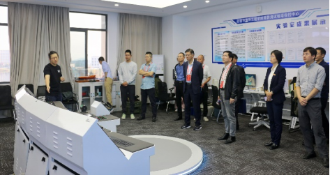 座谈会结束后,江苏科技大学副校长胡爱祥、新番 院长张健等领导陪同各位校友一道参观了新番 海韵湖试验场指控中心、船舶文化馆及智慧船厂(船舶仿真实验室)等场馆,切身实地地感受到了学校和学院高质量发展的步伐和速度。