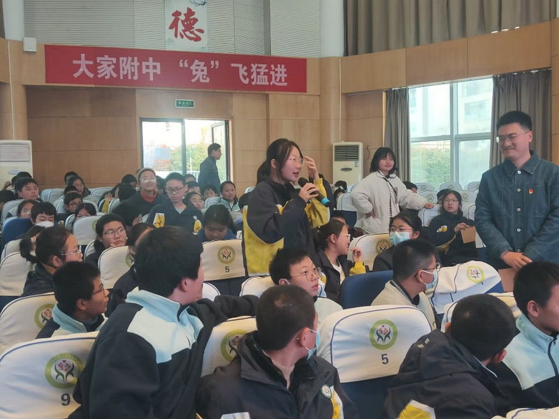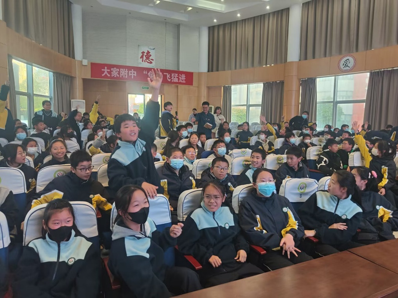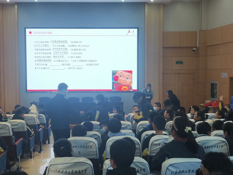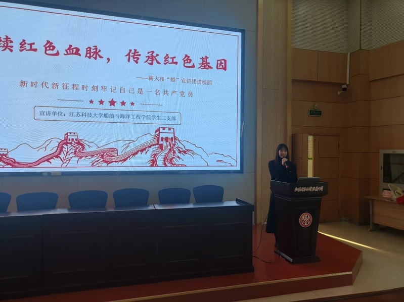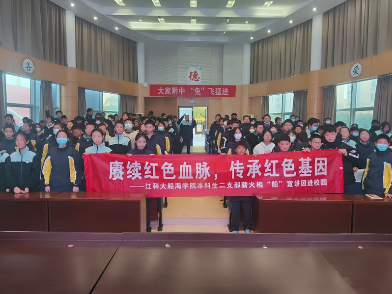 为加强镇江红色文化融入大中小学思政一体化建设,引领青少年学习党的光辉历史,赓续红色精神血脉,厚植爱党爱国爱社会主义情怀。12月8日下午,江苏科技大学新番 本科生学生二支部“薪火相‘船’宣讲团”走进镇江市江苏科技大学附属中学,开展主题为“传承红色基因,培育时代新人”的宣讲活动,共有170名少先队员参加此次活动,活动由支部书记黄妍主持。