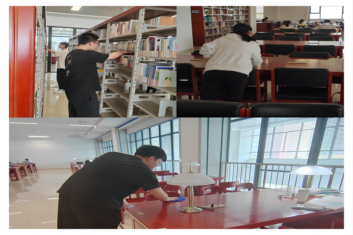 427日,24义工同学按照4人一组的方式对图书馆的每个楼层进行清洁,包括对书桌、书架等的整理,他们以实际行动为维护校园环境贡献了一份力量。同学们忙碌的身影穿梭在书架之间,他们细心擦拭书架、桌面,拂去图书上的浮尘。他们团结协作,有序高效,用实际行动践行了“爱护公物,爱护环境”的理念。本次活动不仅提升了图书馆的整体卫生环境,更在全体参与者的共同努力下,进一步强化了同学们的集体责任感与环保意识。大家纷纷表示,通过亲身参与这样的公益活动,更加深刻地体会到“校园是我家,清洁靠大家”的真谛,今后将更加珍惜和爱护学校的公共资源,为建设美丽和谐的校园环境持续贡献力量。