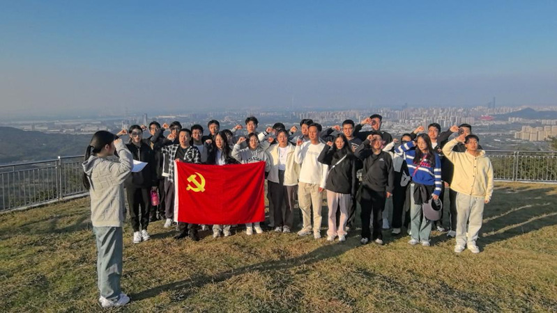 俯瞰整个镇江市,同志们心中涌动着无比的自豪与激动,不仅欣赏到自然风光的壮丽,更深刻领悟了作为党员所肩负的责任与使命。在峰顶之上,党支部全体成员集体重温入党誓词,氛围庄严而热烈。面对辽阔的城市景象,青年党员们深感为人民服务的崇高承诺,必须切实履行对党和人民的职责。在未来的生活和学习中将继续践行党的宗旨,以实际行动为党和人民贡献自己的力量。