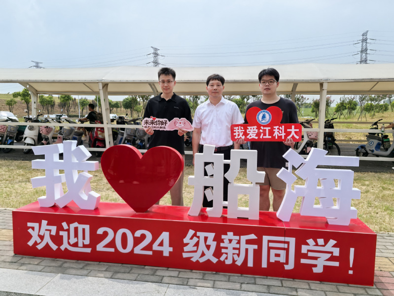 “三二一,开学快乐!”报到完成后,不少新生和家长纷纷举起“定锚稳舵,奋楫扬帆”“未来你好,我是江科大新生”、“我爱江科大”等手牌,来到学院搭建的“我爱船海”打卡点打卡留念,镜头锁住的不仅是回忆,更是新生们对于未来研究生生活的美好期许和憧憬。