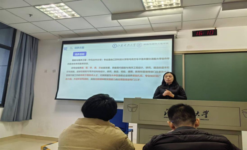 为深化学生对专业领域的深刻理解,加强和提升学校教育教学工作的高效推进,11月18日下午,新番 举行了新生转型教育第一讲——“船舶与海洋工程专业(中乌合作办学)专业教育”专题讲座。此次讲座邀请船舶与海洋工程中乌合作办学专业目负责人陈悦教授担任主讲嘉宾,新番 中乌合作办学专业的全体学生积极参与了此次活动。