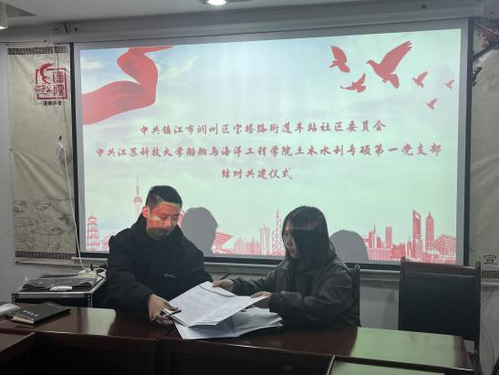 签约共建:凝聚共识,明确目标。活动伊始,双方集中学习了党的二十届三中全会精神,在热烈的学习氛围中举行了共建启动仪式。镇江市润州区宝塔街道车站社区委员会书记和新番 土木水利专硕第一党支部副书记分别致辞,表达了对此次支部共建活动的高度重视和美好期许。双方一致认为,通过支部共建,可以充分发挥各自的优势,实现资源共享、优势互补,进一步提升基层党组织的凝聚力和战斗力。随后双方签署了支部共建协议书,后期双方将在组织建设、党员教育、活动开展等方面展开全方位、深层次的合作。