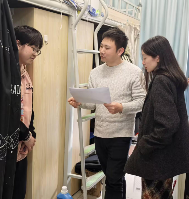党委副书记巫蓉带领全体辅导员及班主任,依托“蓝途”一站式学生社区平台,深入学生宿舍开展“问需于生、问计于生、问效于生”的关怀走访与宿舍检查活动,将思想引领、学业指导、生活服务与安全教育有机融合,全面助力学生成长成才。