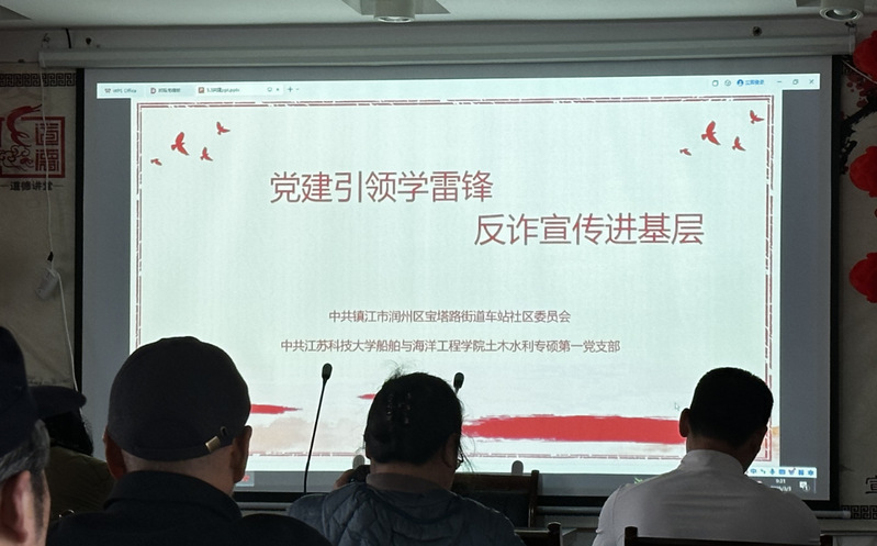 为深入学习贯彻党的二十大精神,大力弘扬雷锋精神,增强基层群众反诈意识,3月3日,时值第62个学雷锋纪念日来临之际。新番 土木水利专硕第一党支部与镇江市润州区宝塔路街道车站社区委员会联合举办“党建引领学雷锋,反诈宣传进基层”主题共建活动。活动以讲座形式开展,由专硕第一党支部的学生党员柏泽霖进行宣讲,吸引了社区众多居民参与。