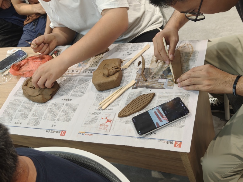 在手工体验环节,40余名学生与社区居民在指导下亲手制作泥叫叫。揉泥、塑形、开孔、修胚…参与者沉浸于泥土的触感中,感受传统手工艺的温度。船舶学院学生将专业特色融入创作,捏制出船锚、浪花等造型,诠释“船承”主题的双重内涵——既是对非遗技艺的接力传承,亦彰显船舶学子的专业认同。