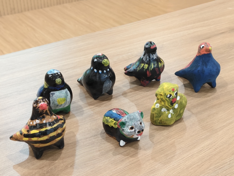 活动伊始,“蓝途”一站式学生社区志愿者申福康现场讲解太平泥叫叫的历史渊源。作为起源于民间的陶塑玩具,太平泥叫叫以镇江本地黄泥为材,经捏塑、烧制、彩绘等12道工序制成,其哨音清脆悠扬,承载着祈福纳祥的美好寓意。宣讲人通过实物展示,解读了泥叫叫造型中蕴含的地域文化符号。
