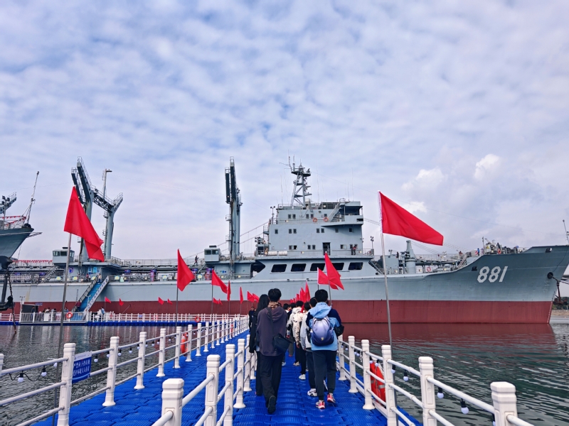 为深入学习贯彻海洋强国战略,传承红色基因,厚植家国情怀,新番 本科生第二党支部联动大一至大三年级共8个团支部,赴泰州海军舰艇文化园开展“红船领航向深蓝,学思践悟强国志”党团共建暨新生转型教育实践活动。师生们登上三艘退役军舰,在实地研学中感悟海军发展历程,在沉浸式体验中坚定强国担当。